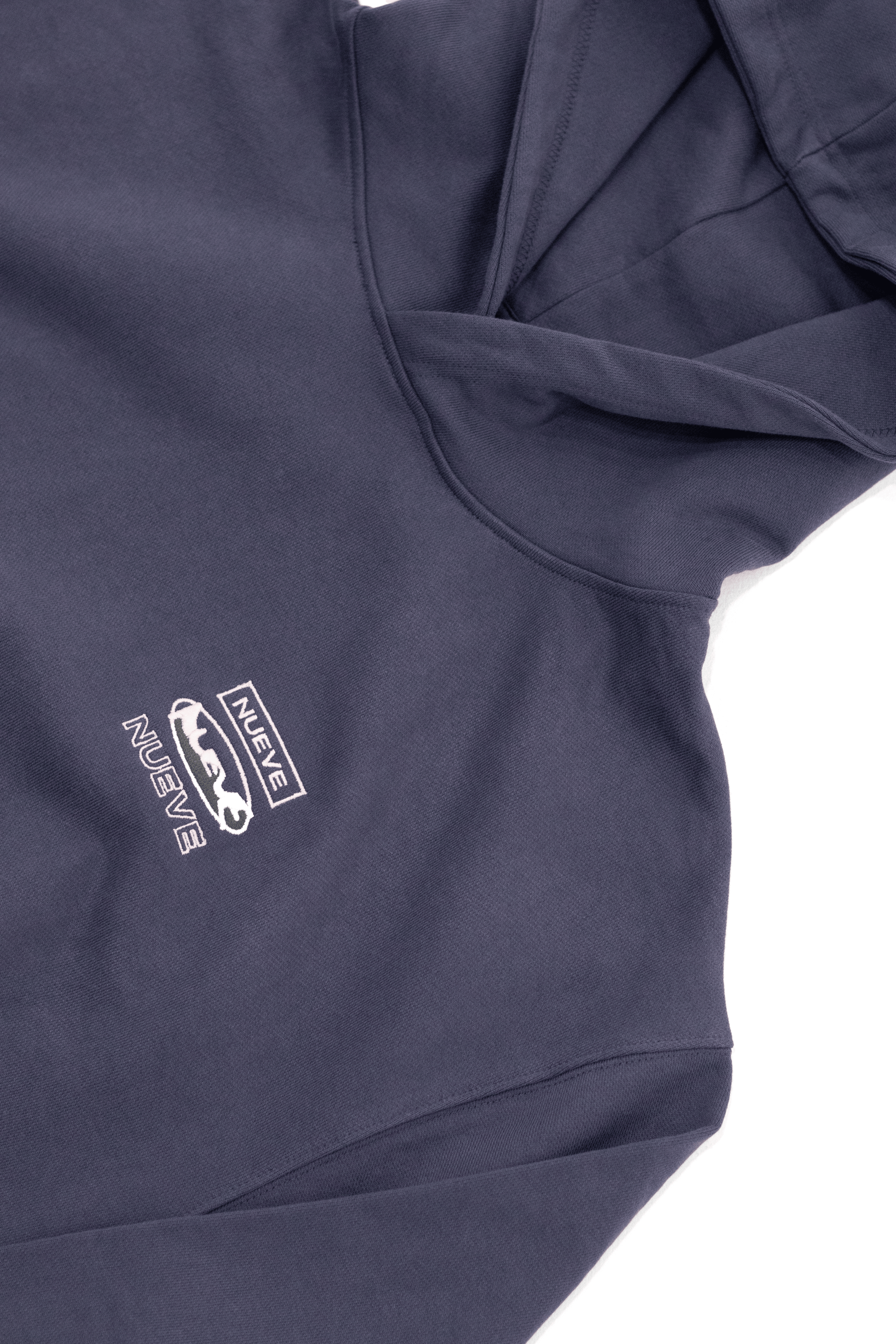 Ce hoodie oversized fait partie de la capsule Repetition de NUEVE. Confectionné au Portugal en coton biologique épais (460 g/m²), cultivé sans produits chimiques ni OGM et nécessitant deux fois moins d’eau que le coton conventionnel. Le triple logo NUEVE brodé sur la poitrine affirme une esthétique graphique sobre et contemporaine.