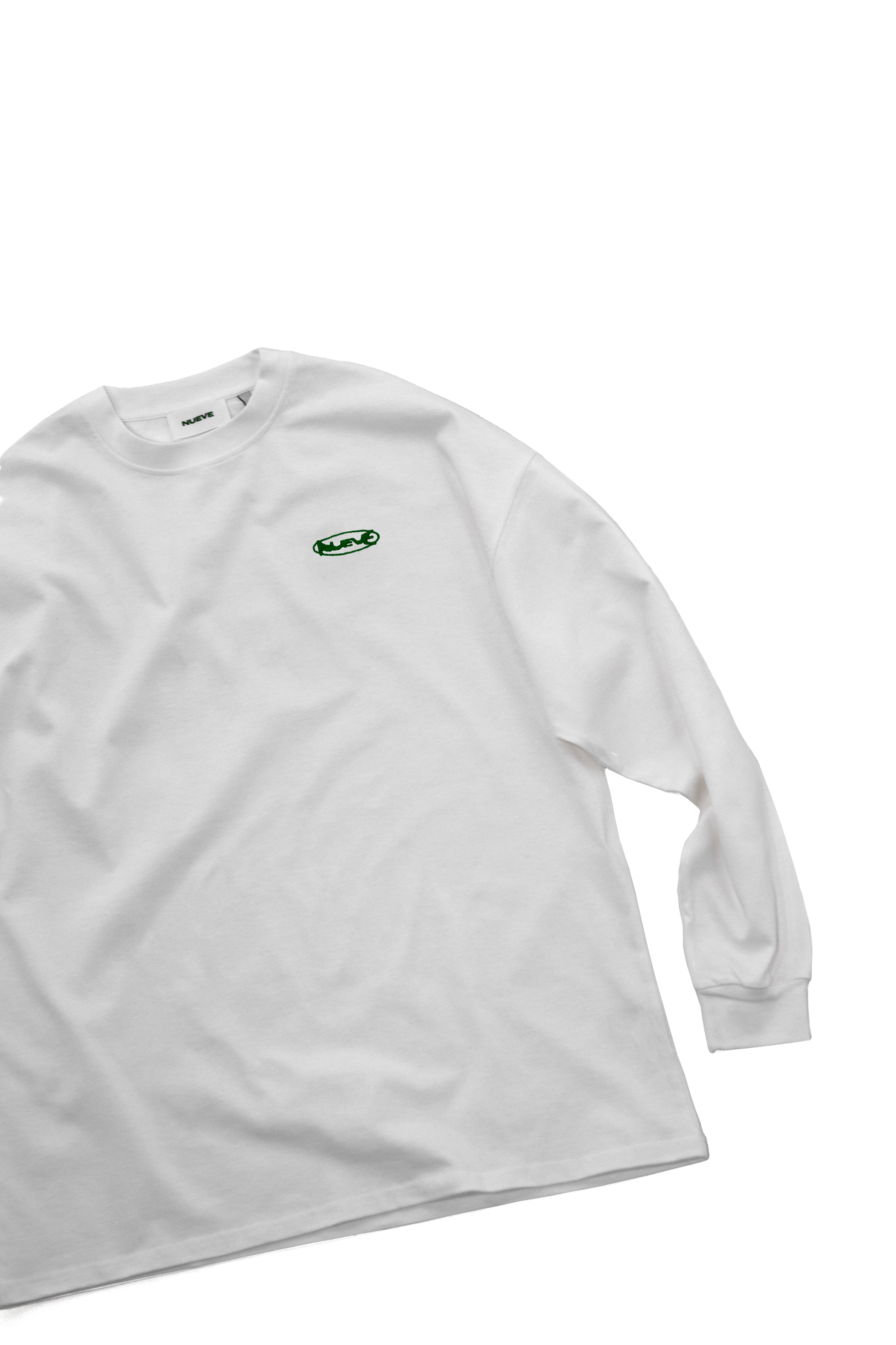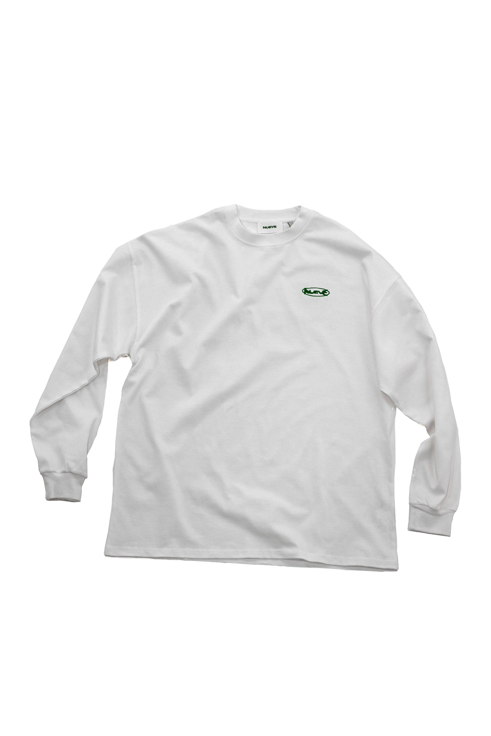 Ce t-shirt manches longues oversized fait partie de la ligne Essential de NUEVE. Confectionné au Portugal en coton biologique de 240 g/m², cultivé sans produits chimiques ni OGM et nécessitant deux fois moins d’eau que le coton conventionnel. Les épaules tombantes et le logo NUEVE brodé définissent une silhouette pure et minimaliste.